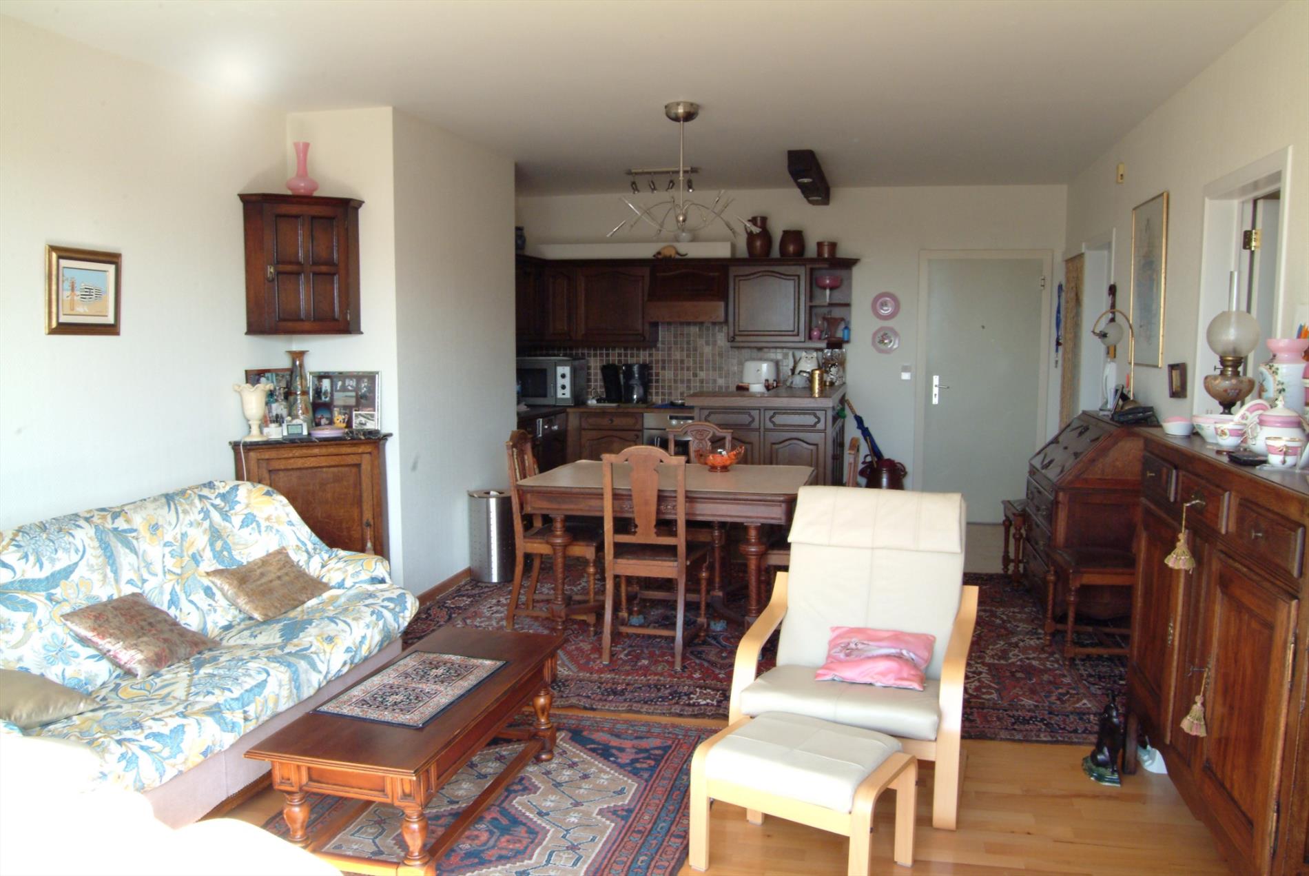 Op te frissen dakappartement op de 8ste verdieping in de residentie Wellington te De Panne. U bevindt zich op enkele stappen van zee en Esplanade. Het appartement biedt u: woonkamer met open keuken, 2 slaapkamers, badkamer met ligbad, lavabo en wc. Prachtige ruime zongericht terrassen rondom het appartement die zijdelings zeezicht bieden. Bijhorende kelder en parkeerplaats in de ondergrondse.