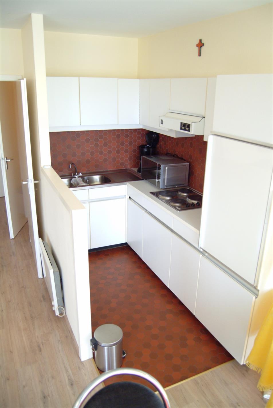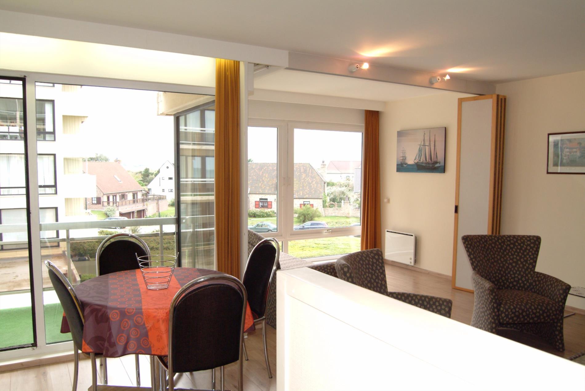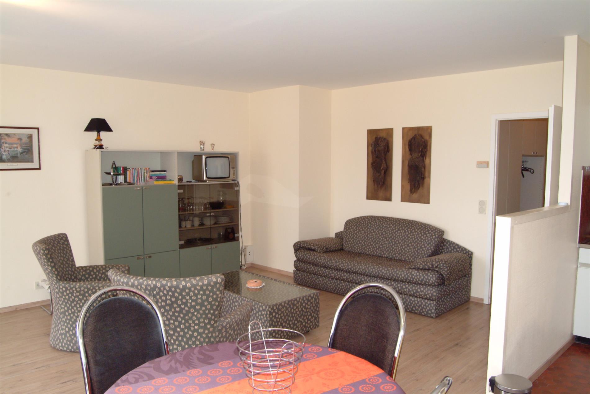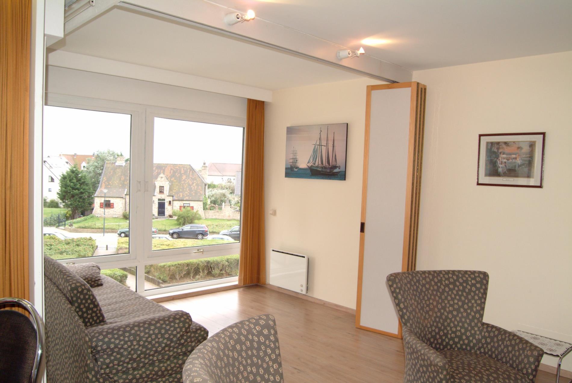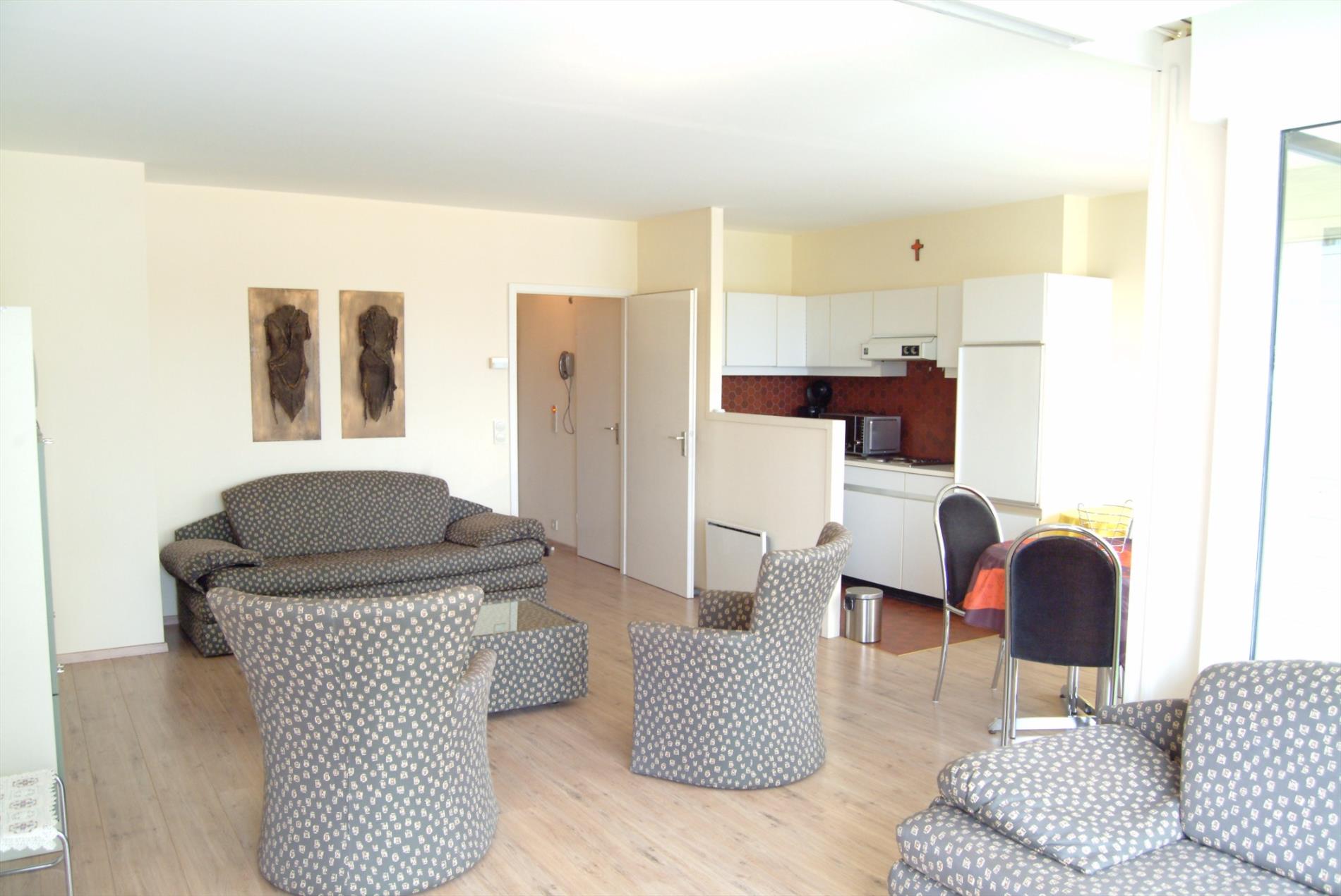Comfortabele studio vlak aan zee gelegen. Deze studio (50m²) omvat inkomhal, badkamer met ligbad, lavabo en toilet, woonkamer met keuken, living en zithoek/slaaphoek, aangenaam stuk zonneterras. Bijhorende kelder en mogelijkheid tot aankoop van een ondergrondse auto standplaats. Gemeenschappelijk ZWEMBAD en speeltuin! Gemeubelde verkoop.
