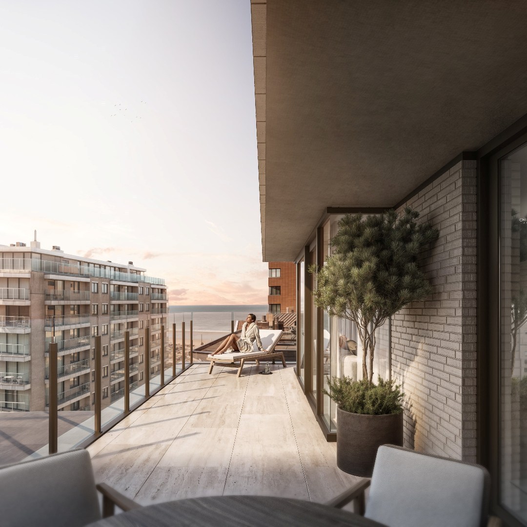 Nieuwbouw appartement in de residentie VYRT te De Panne. Het appartement omvat: inkomhal met vestiaire en apart toilet, ruime woonkamer met open keuken, berging en toegang tot het terras. 2 slaapkamers uitgevend op het achterliggende terras met elk hun eigen badkamer.