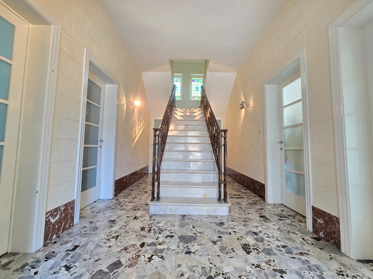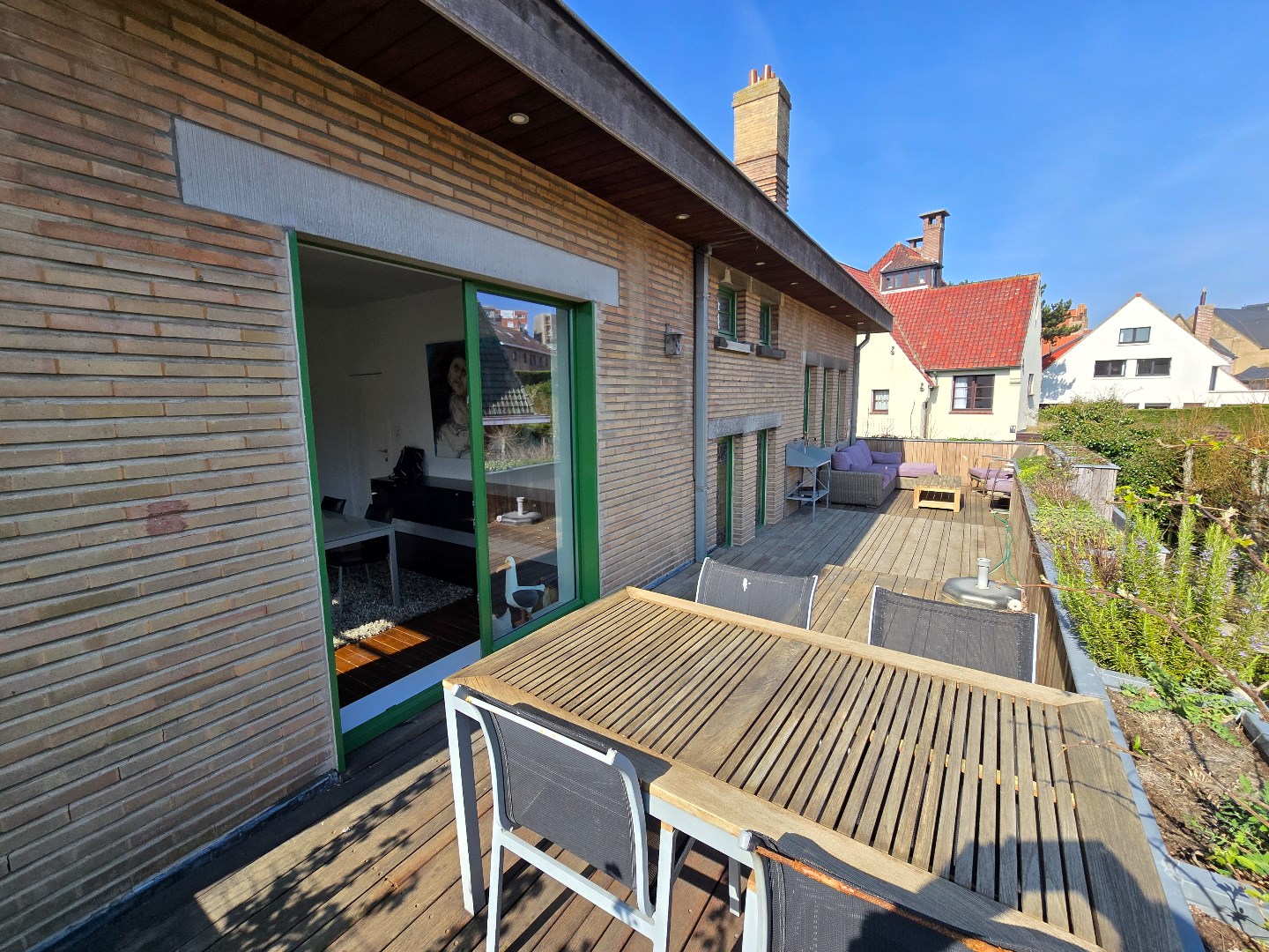 Prachtige en zeer goed onderhouden dokterswoning ('Bj '39) binnen de beschermde Dumontwijk te De Panne. De eigendom bevindt zich op enkele stappen van zee en het commerciële centrum en biedt u: imposante inkomhal, bureel, wachtkamer, fitnessruimte, wellnessruimte en wc. Op de 1ste verdieping grote zongerichte woonkamer, eetruimte en open keuken, toegang tot het zonneterras, 2 slaapkamers, wc en badkamer met inloopdouche. Op de 2de verdieping bevinden zich 2 zeer ruime slaapkamers met eigen sanitaire voorziening en een 3de kleinere slaapkamer. Met inpandige garage en 3 parkeerplaatsen in de voortuin. De woning is volledig onderkelderd en wordt verwarmd op aardgas (gedeeltelijk met vloerverwarming). Recent vernieuwde ramen. Rondom aangelegde siertuin.