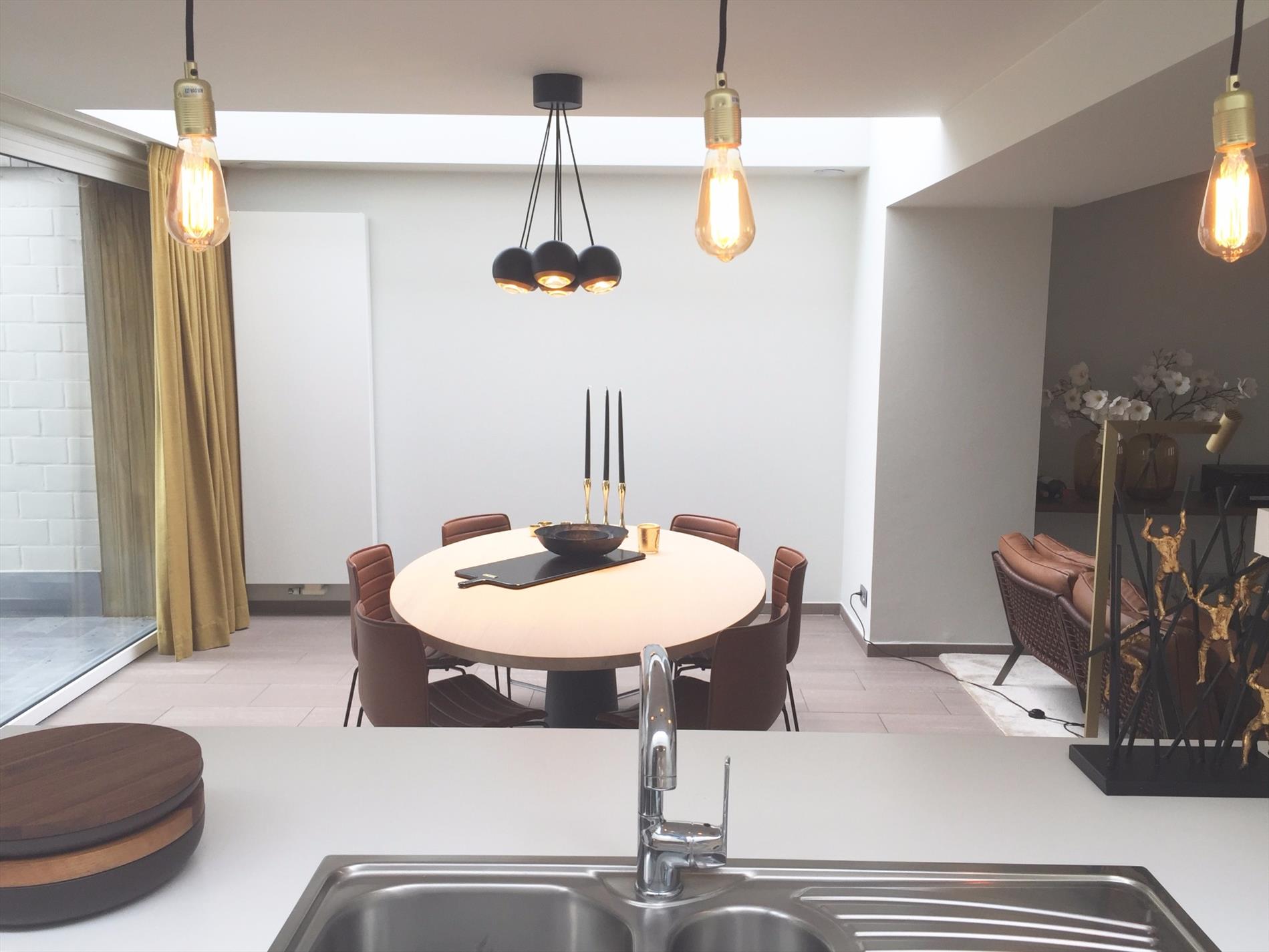 Prachtig gerenoveerde en stijlvol ingerichte woning ('09) in het landelijke Lampernisse (deelgemeente Diksmuide). U bevindt zich temidden van de beschermde Oudlandpolders. Deze woning omvat op het gelijkvloers: inkom met apart toilet, living met open en volledig uitgeruste SieMatic keuken, berging/wasruimte, garage en terras. Op de verdieping bevinden zich badkamer met ligbad, dubbele lavabo en wc, 3 slaapkamers waarvan één met groot zonneterras en uitzicht op de komgronden van Lampernisse. Netjes geschilderd en recent voorzien van een nieuwe Viessman gaschauffageketel. Centraal stofzuigsysteem en ventilatiesysteem aanwezig. Incl. raamdecoratie.