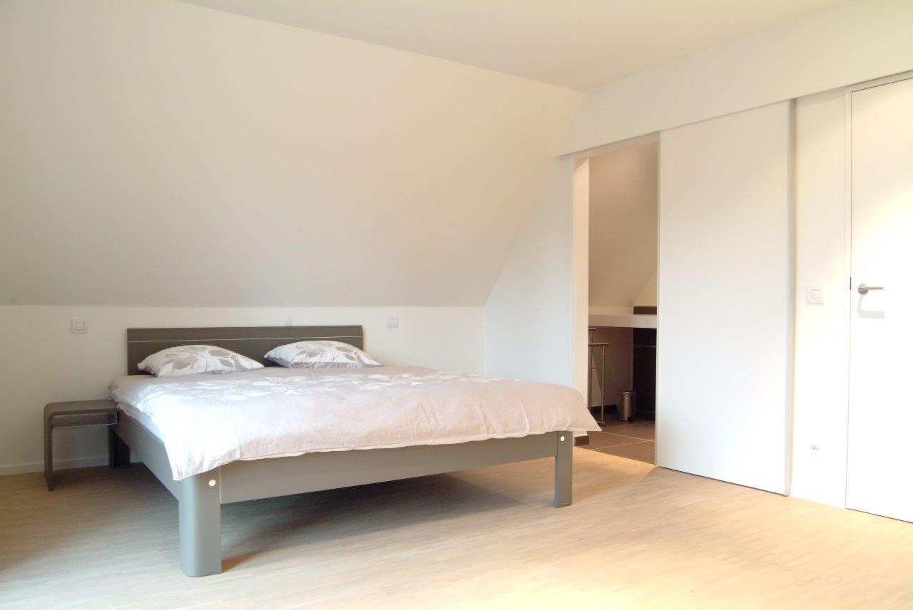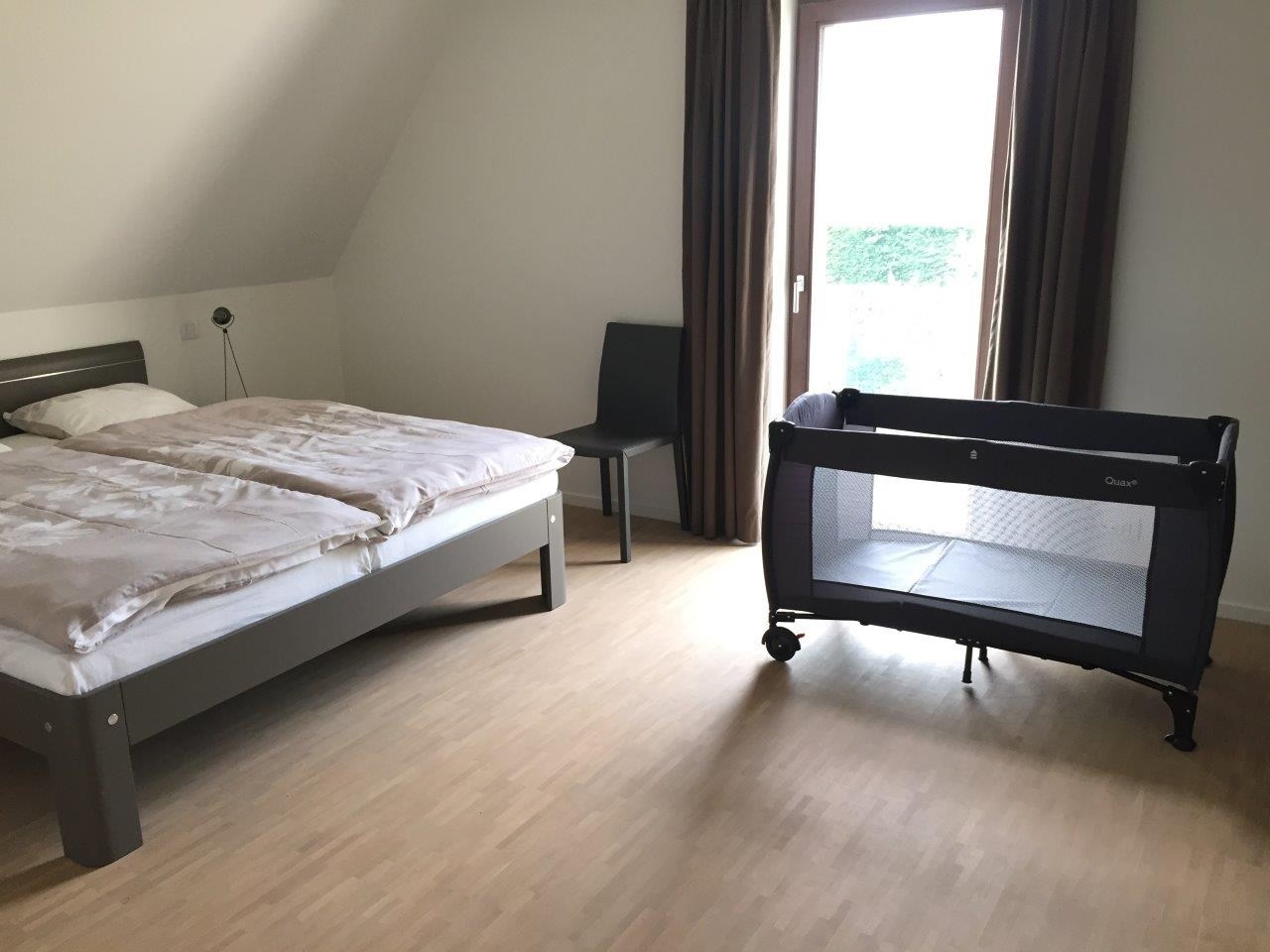 Op de verdieping bevindt zich : 2 ruime slaapkamers met dubbel bed met elk hun eigen badkamer met inloopdouche en lavabo, gemeenschappelijk toilet op de gang en 1 ruime slaapkamer met dubbel bed, kinderbedje, verzorgtafel en eigen badkamer met inloopdouche, lavabo en toilet.