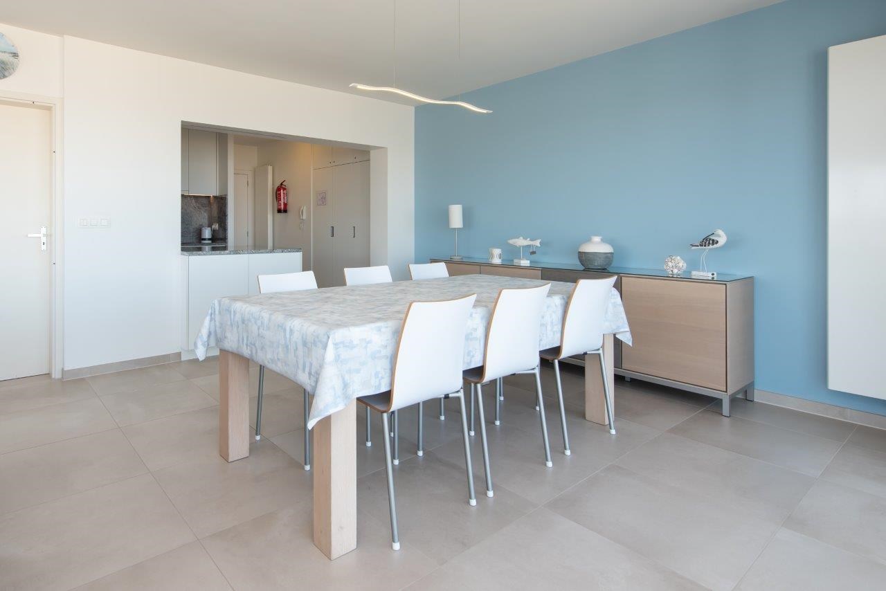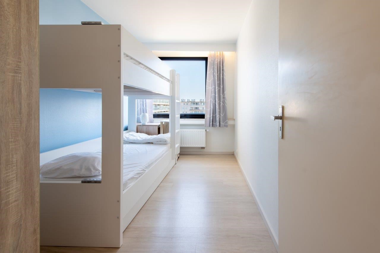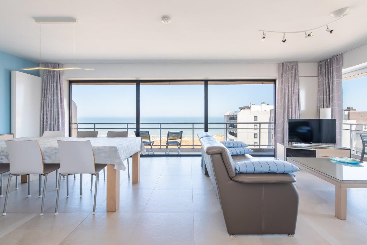 Bestaat uit: ruime woonkamer met open keuken, zicht op zee en hoekterras. 1 slaapkamer met dubbel bed, 1 slaapkamer met stapelbed en 1 bedlade. badkamer met grote inloopdouche en dubbele lavabo, apart toilet op de gang.